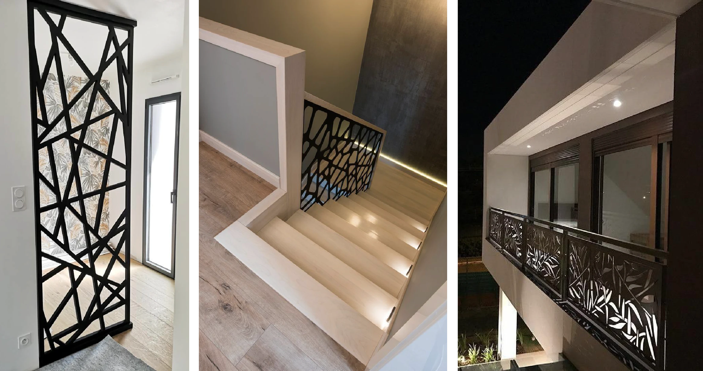Decorativos: Paneles en chapa con cortes láser para interiores, exteriores, portones, divisores o revestimientos.